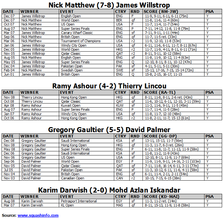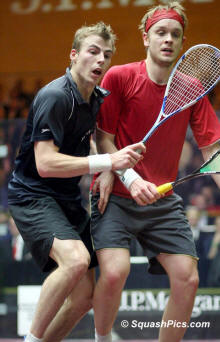with David Palmer and Gregory Gaultier, who both had quick matches