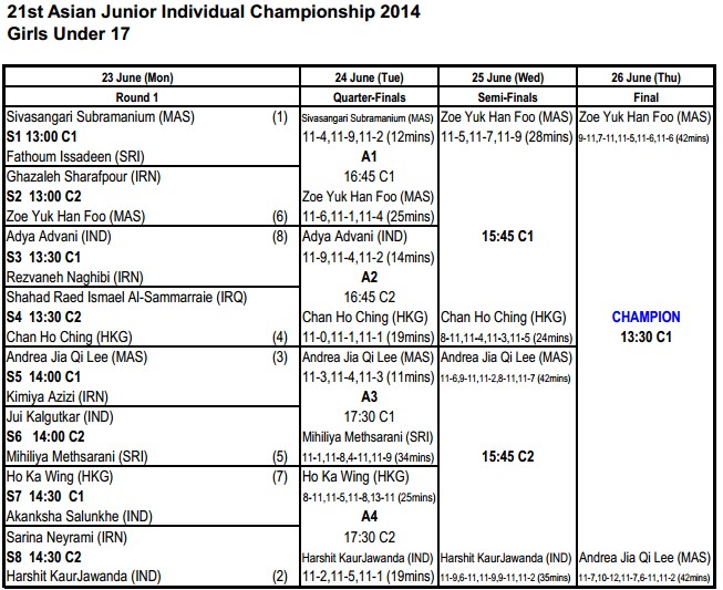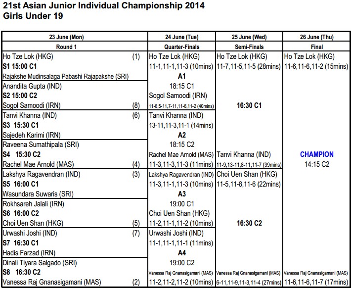 G19: [2] Vanessa Raj (Mas) 3-0 [1] Ho Tze Lok (Hkg)