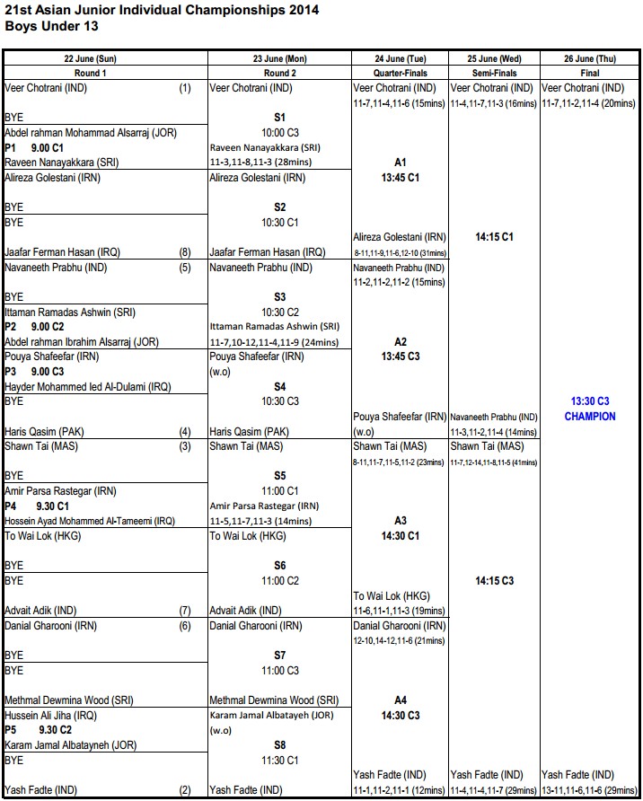 B13: [1] Veer Chotrani (Ind) 3-1 [2] Yash Fadte (Ind)