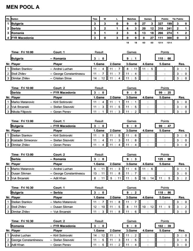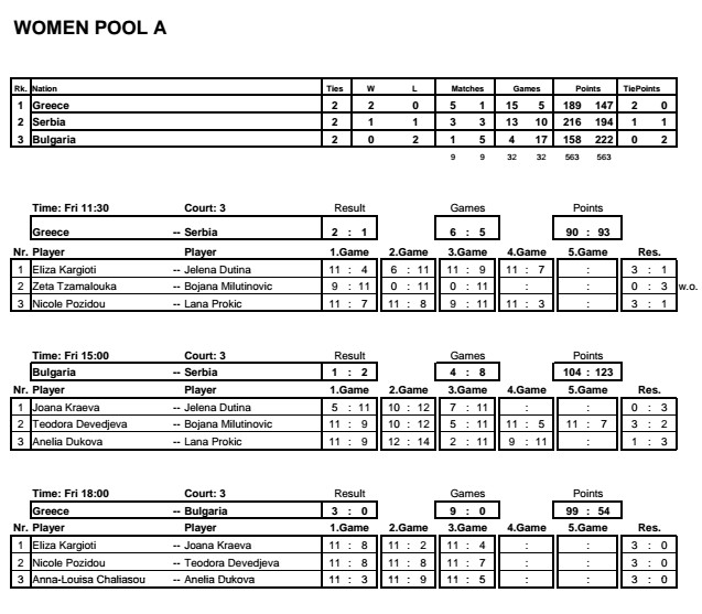 the Balkan Team Champs started today with pool matches for