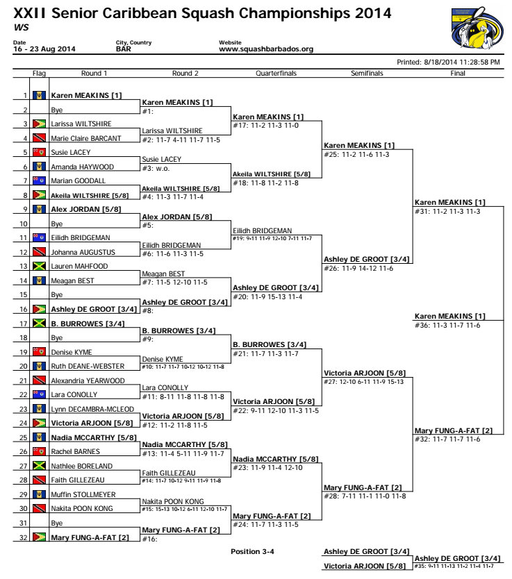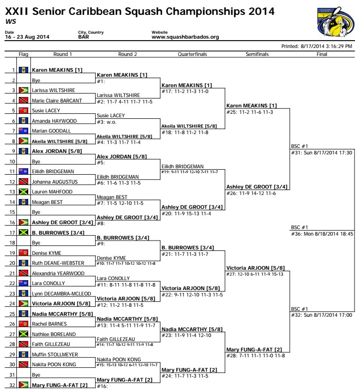[1] Karen Meakins (Bar) 3-0 Mary Fung-a-Fat (Guy)