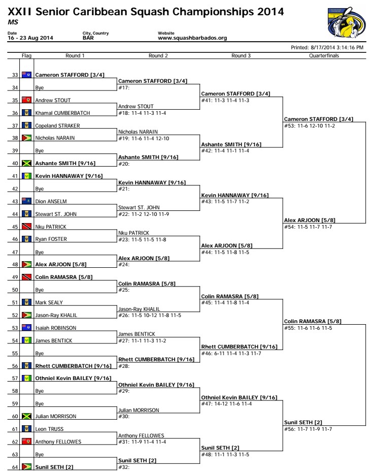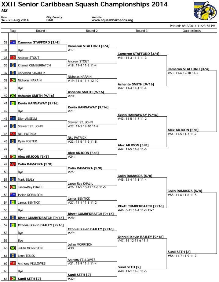 [3/4] Cameron Stafford (Cay) 3-1 [2] Sunil Seth (Guy)