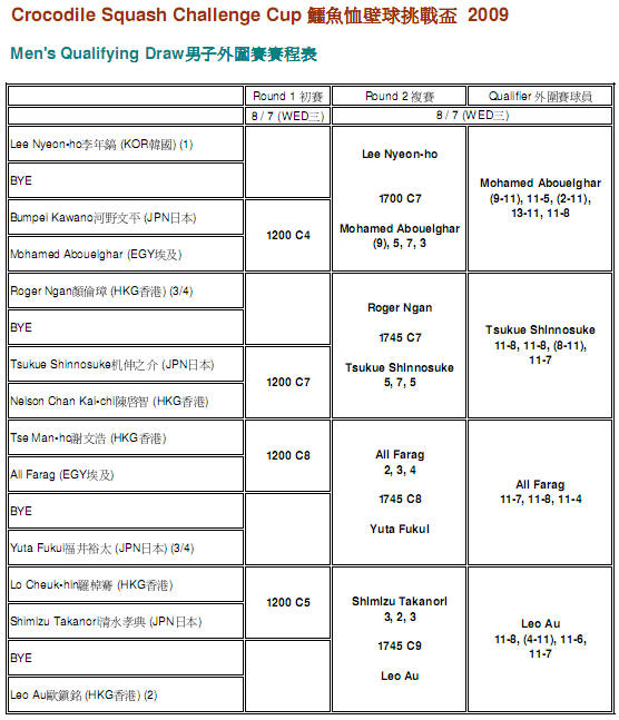 commences on 8th July held at the Hong Kong Squash Centre at 12.00