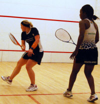 finished off Canadian Stephanie Edmison, the #4 seed, 11/9, 11/6,