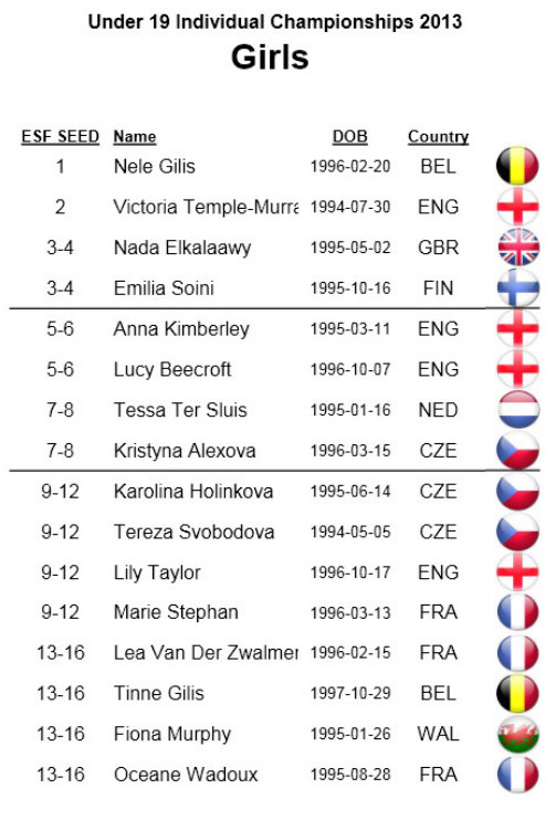 Euro u19 Champs in Switzerland. All top seeded girls made it
