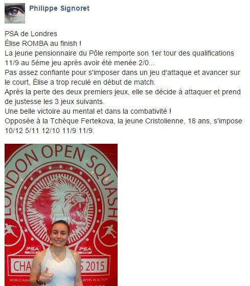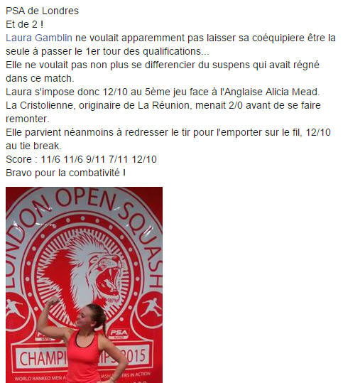 3-1 Laura Gamblin (Fra) 11/4, 7/11, 11/9, 11/7