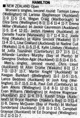 Lindsay(Waikato) and world 42nd ranked player in the