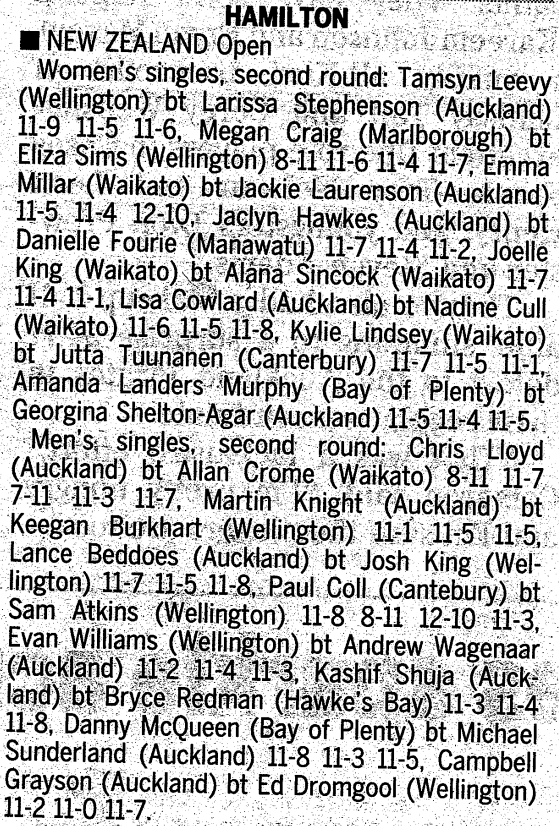 Martin Knight (Auckland) bt Lance Beddoes (Auckland)