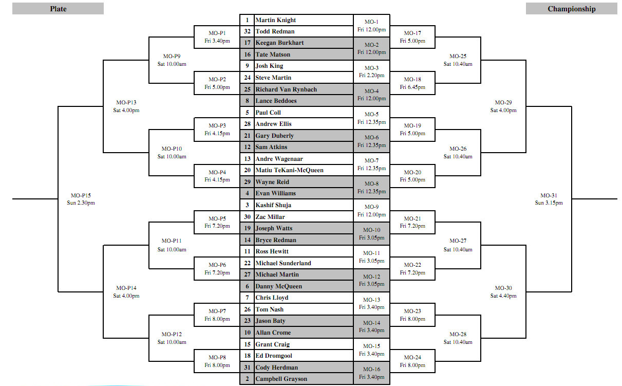 men's draw is headed by top Kiwi pro, Martin Knight