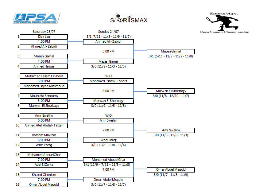 Mazen Gamal bt Ahmed El Zabidi 3/1 (5/11 – 11/7 – 11/2 –