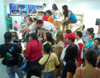 Director Miguel Montero, his assistants Arturo, Miriam and