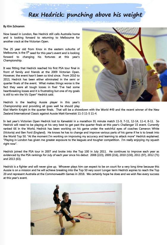 & Racquetball Victoria, the peak body for squash and racquetball in
