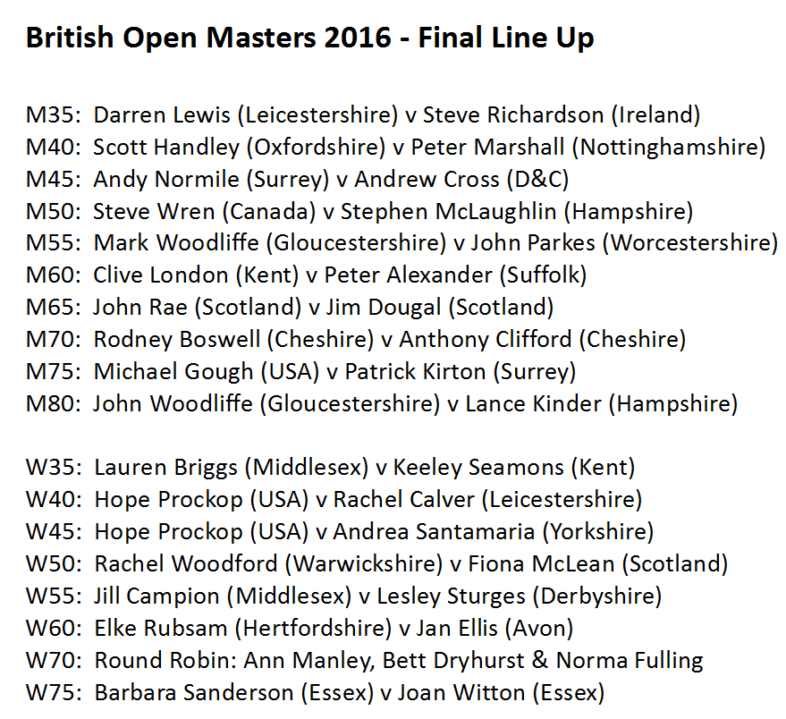 edition of the British Open Masters concluded at Colets Health