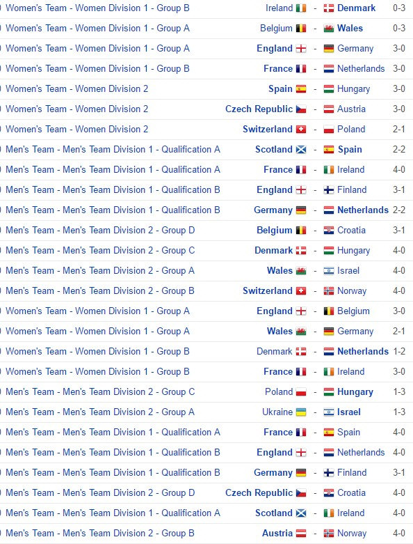 2-1 Ireland Denmark 3-0 Germany