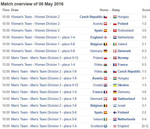 draws between Scotland/Spain and Germany/Netherlands the second