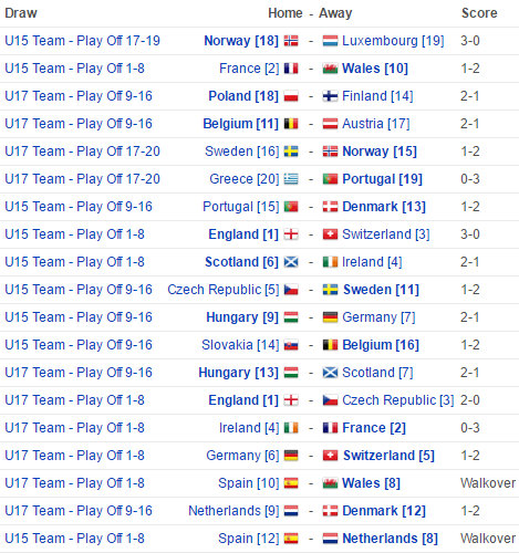 In the U15 playoffs Wales couldn't repeat their heroics in