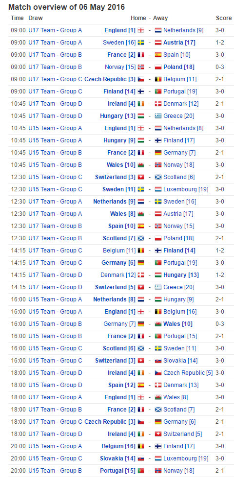 Switzerland 3-0 Netherlands |
