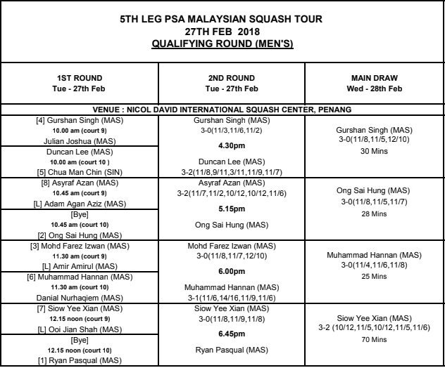 [1] Mohd Syafiq Kamal 11/9, 5/11, 9/11,