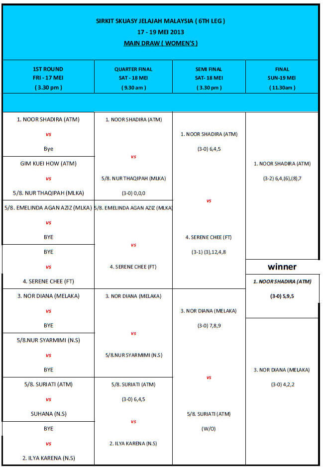 In the women's draw Noor Shadira from ATM has no problem