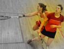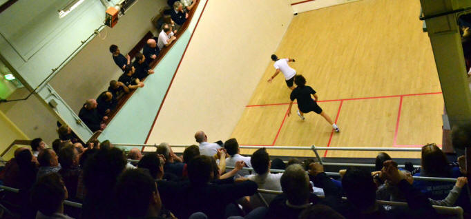 down the play, but with the low roof on this court you can't do
