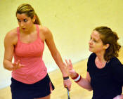 off her volley by hitting it low and hard but I couldn't always