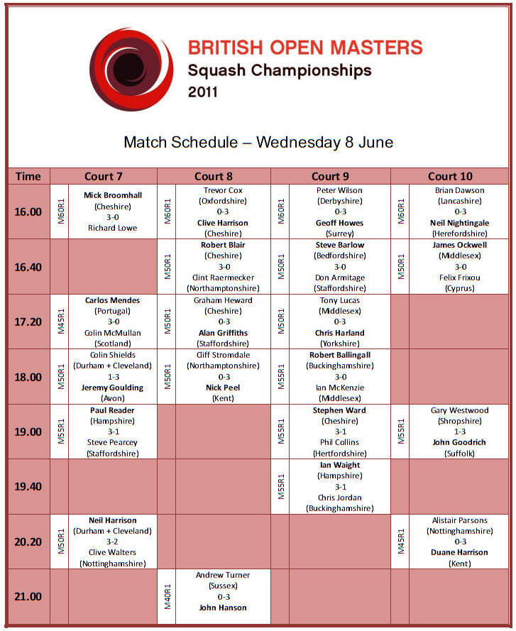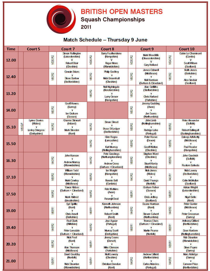 Masters kicks off this afternoon at Nottingham Squash Club.