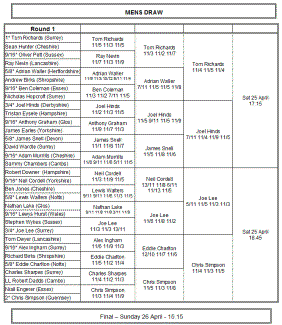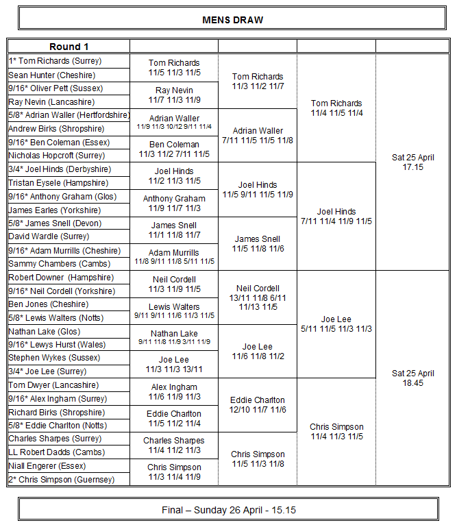 the expected semi finals. Tom Richards (Surrey) defeated Adrian
