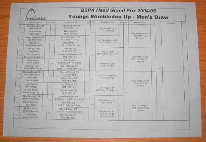me of the final of Canary Wharf against John White on Friday. After a