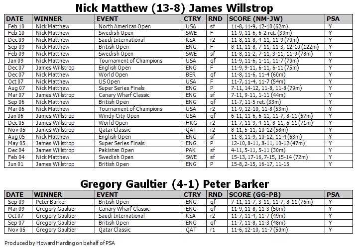 Matthew meets French world No.2 Gregory Gaultier in tomorrow’s