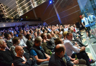 The packed crowd at Canary Wharf's