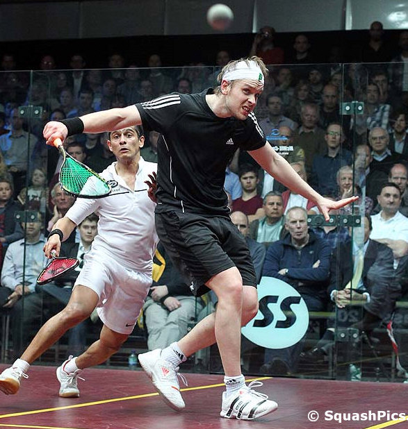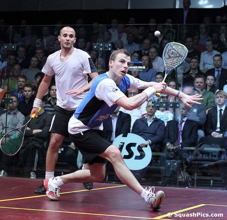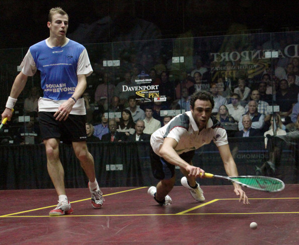 back left corner saw Shorbagy trying and failing to scrape the
