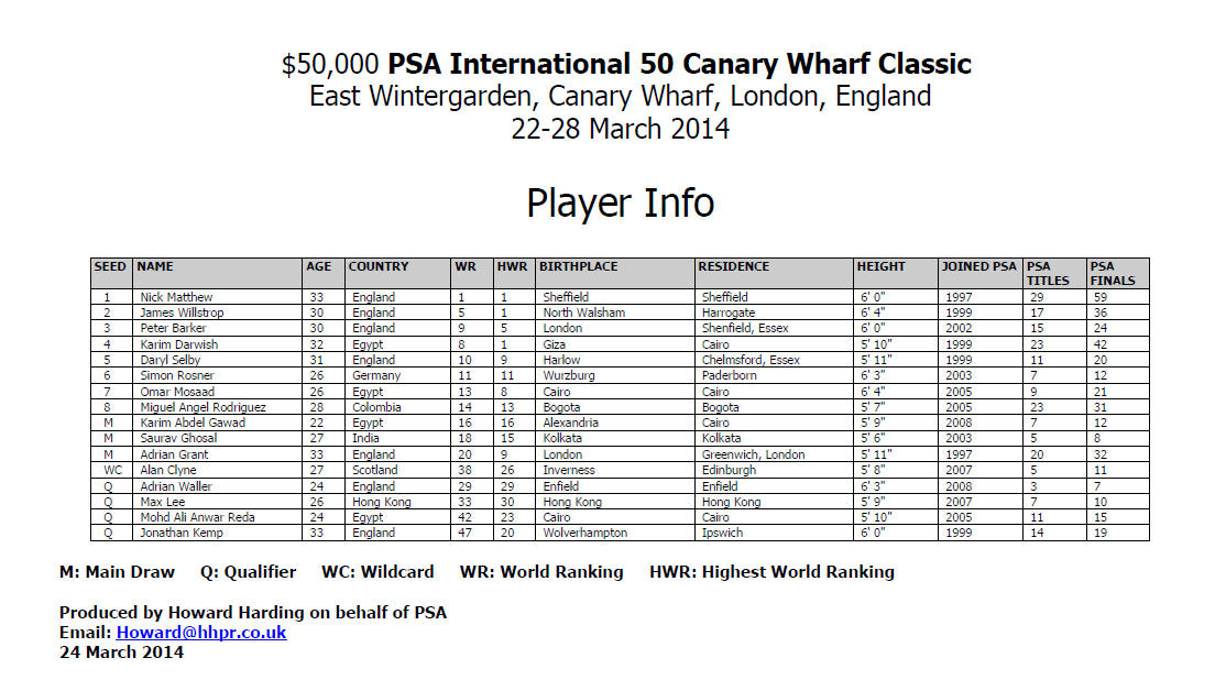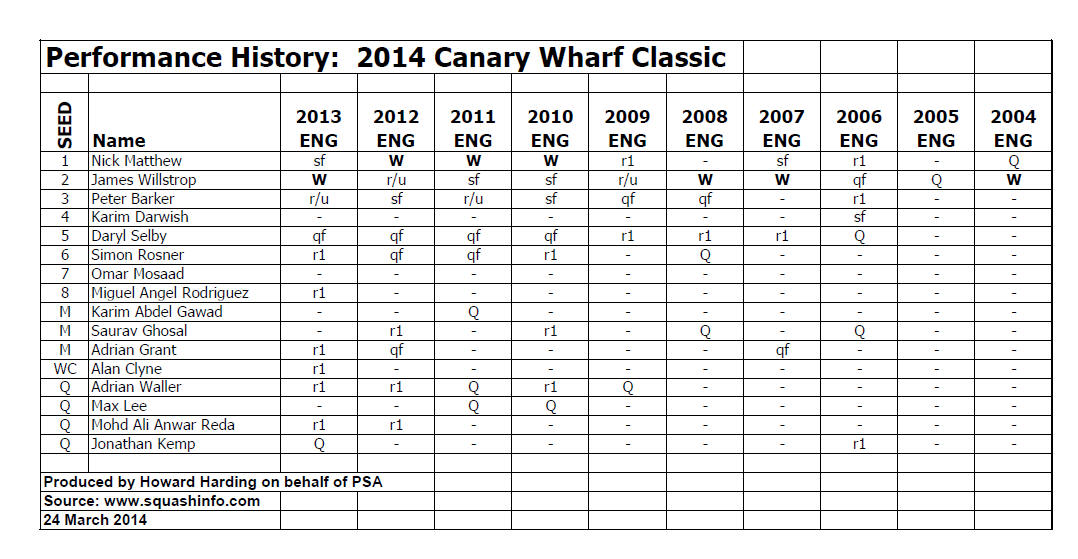 Squash) and Londoner Adrian Grant.