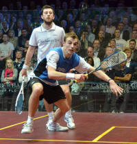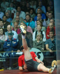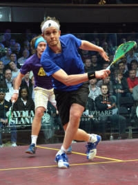chasing down a shot from Nick Matthew as the world