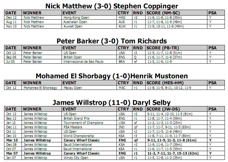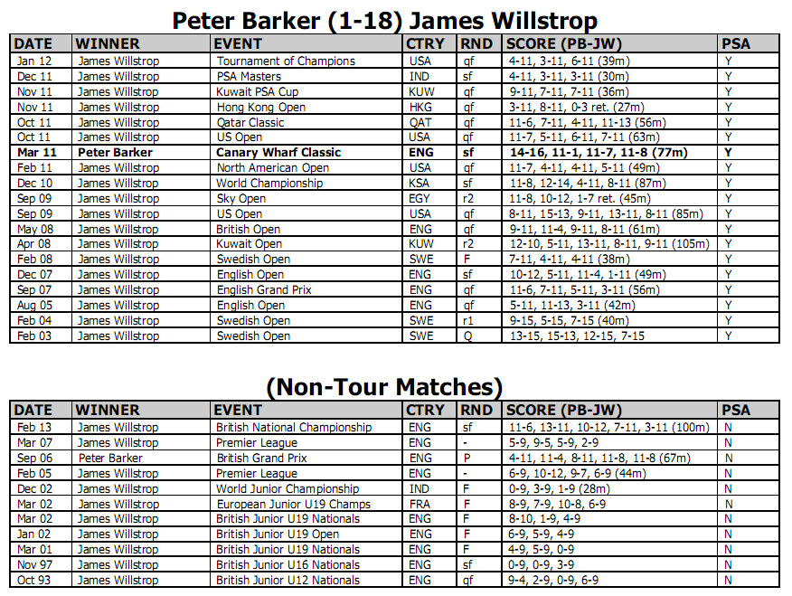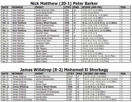 Player Stats from Howard Harding www.squashinfo.com
