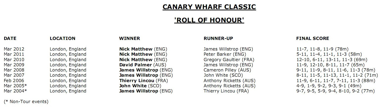 • Canary Wharf Squash Classic • 18th to 22nd March 2013 • London •