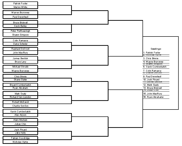 Shawn Simpson (5) d. Bruce Bicknell (13) 3/0 9/0, 9/0, 9/0