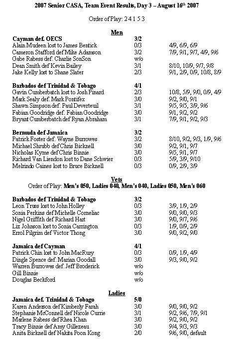 James Bentick (11) (OECS) d. Bruce Levy (Jam) 3/0 9/5, 9/5, 9/2