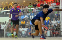both players urged on by their noisy support.