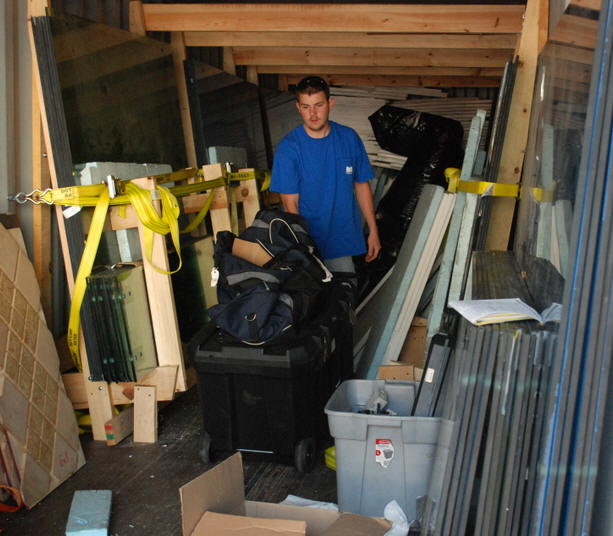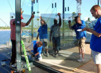 glass panels out of the container.