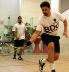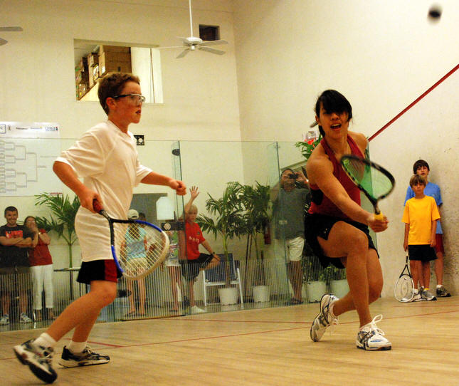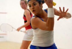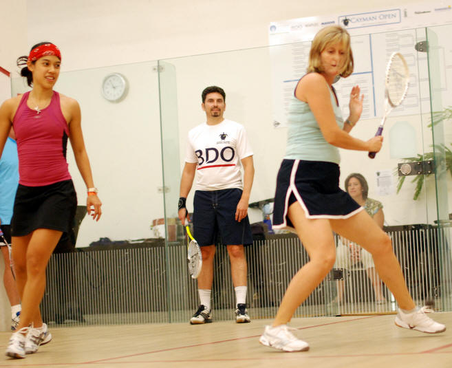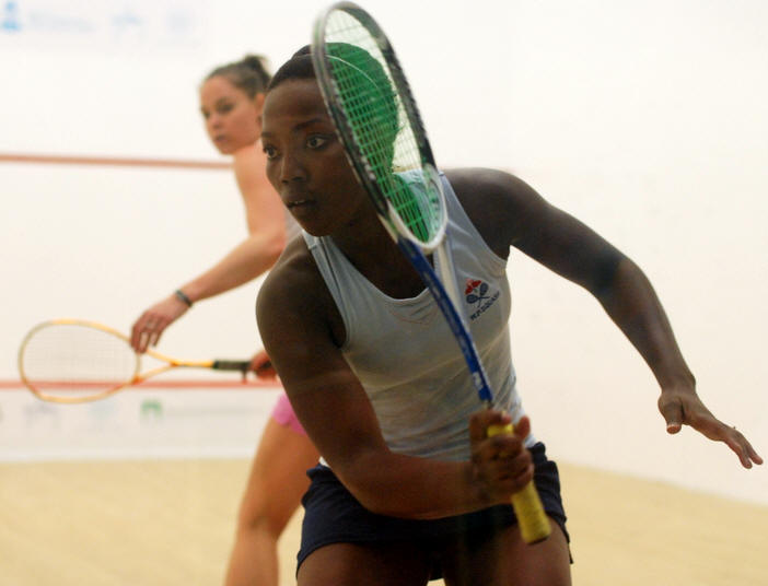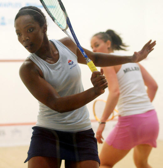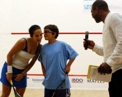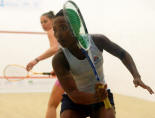 Nicol David, Colin Ramasra, Shawn Simpson challenged by the