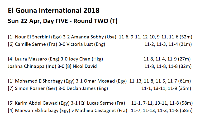 matches in the top half of the draw, split between the El Gouna Squash
