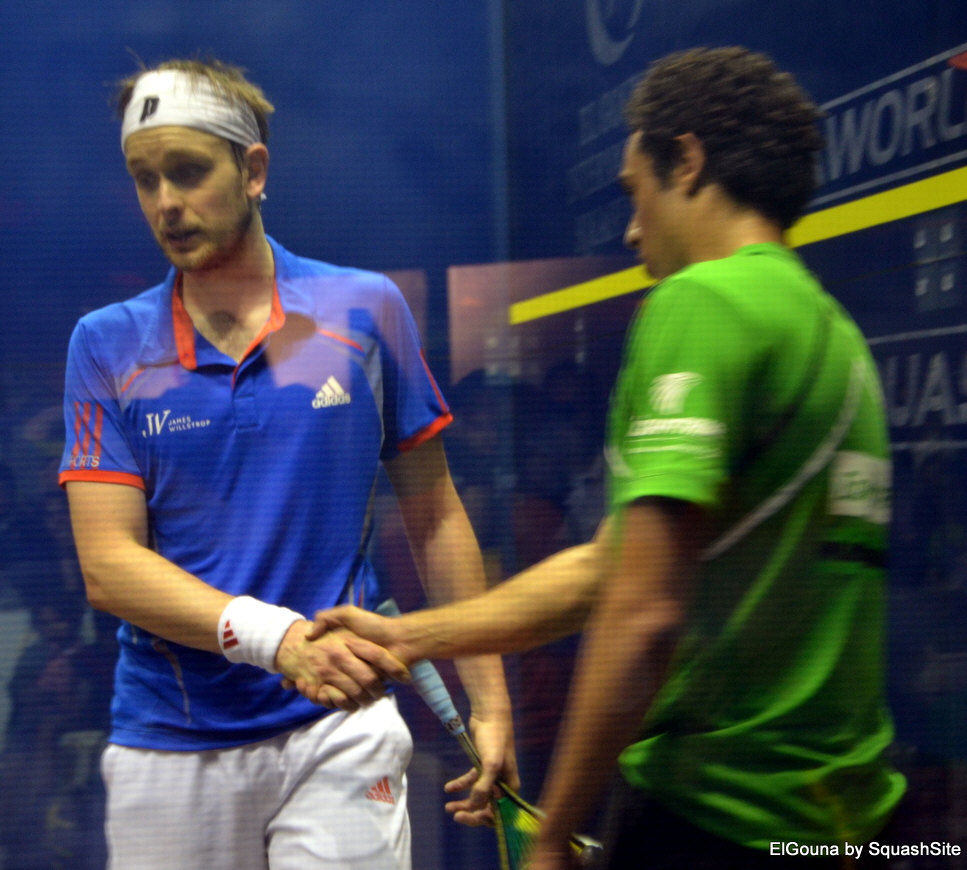 Willstrop approached his opponent at the front of the court,