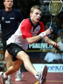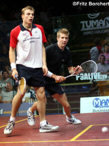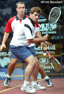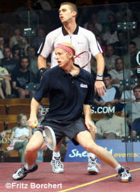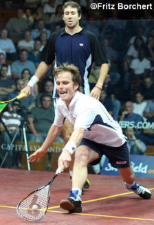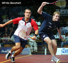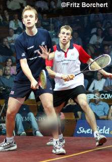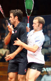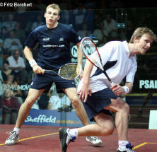 better than Peter Nicol v Nick Matthew. Peter, one of the excellent Eventis team and Nick, local boy made good.