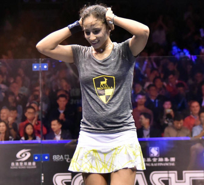 up was world number one Nour El Sherbini, playing in her