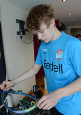 Tom Ford's case) restringing ready for the first round starting
