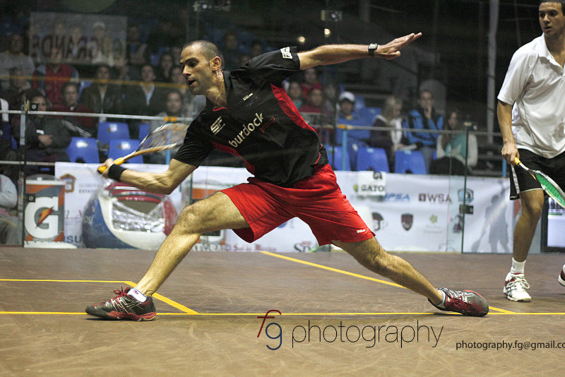 Karim Ali Fathi beat Steve Finitsis 6/11, 11/6, 11/3, 11/9.