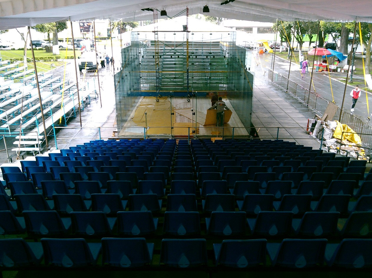 place on an all-glass court at Alameda Park in Mexico City from