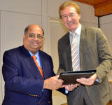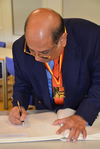 Gifts were exchanged and Mr Ramachandran signed the centre's