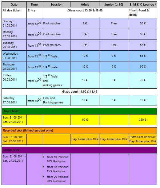 TICKETS tickets@wmtc2011.com Tel: 0-5251-1371176