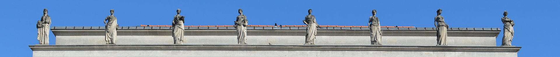 Les huit muses juchées sur un rebord du sommet de la façade. De
